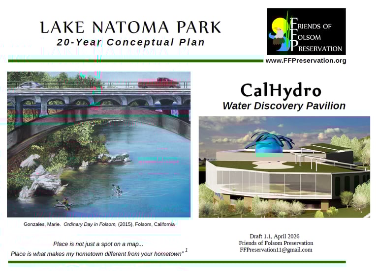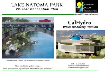 The Lake Natoma Park 20-Year Conceptual Plan explores recreation, habitat, and connectivity—including a wind and rain bridge that complements the existing trail system, along with wildlife crossings designed to support safe animal movement.